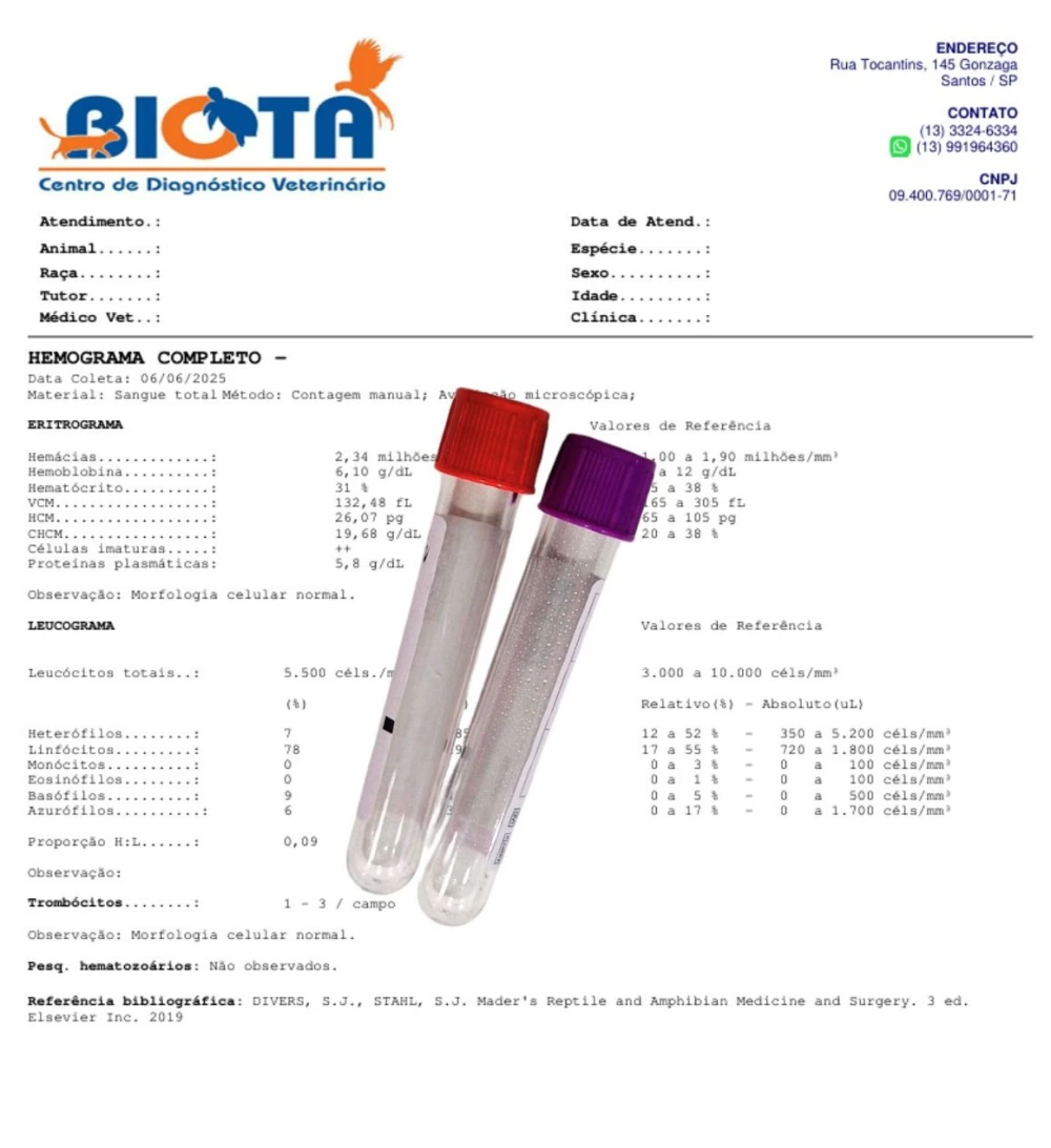 Hemograma para animais silvestres e exóticos