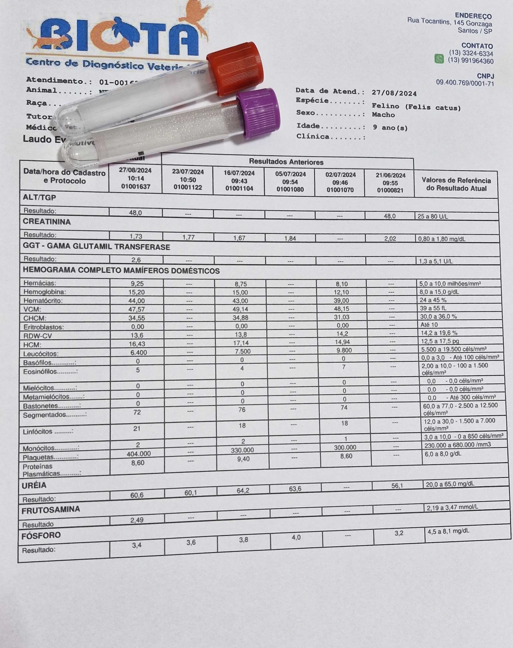 Exame de sangue gato valor